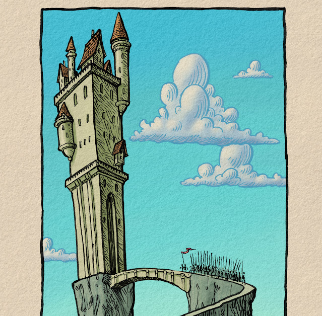 "Castle" Ink drawing and digital paint. Completed December 1, 2023