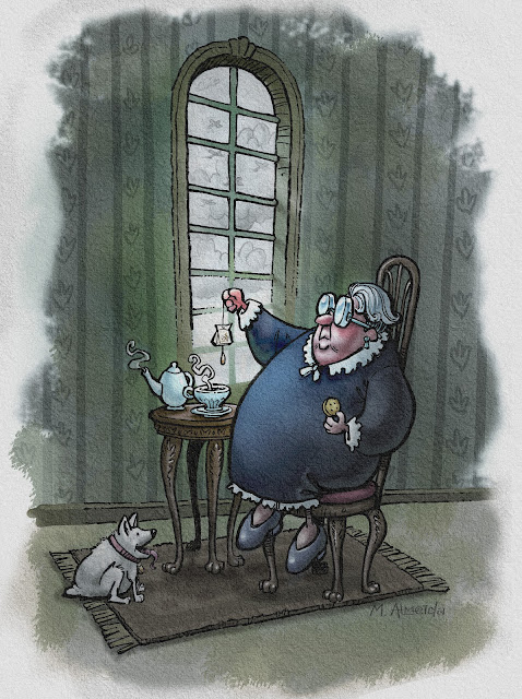 "Fortune" Ink drawing and digital paint. Completed November 7, 2023